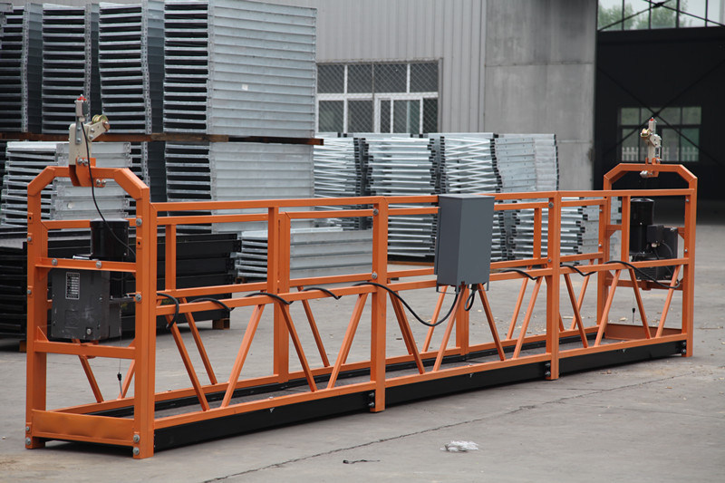 Steel Wire Rope Suspended Platform construction for external wall Description: Quick details: Main Components: Platform, Suspension Mechanism, Hoist, Safety Lock, Electrical Control System, Steel Wire Rope, Cable, Safety Lock. Length of Platform: 7.5M (2.5M*3SECTIONS) ---- can be customized Hoist Power: 380V/220V/415V/440V, 50Hz/60Hz Suspension Mechanism: Painted or Hot Galvanized Safety Lock: LS30 (2 pcs per set) Electrical Control System: inner parts with brand CHINT or