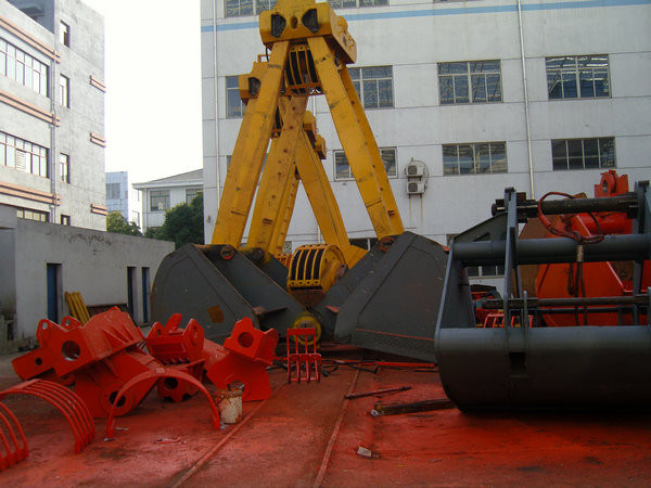 Mining Excavator Spare Parts Quick Detail: Our engineer took extreme working conditions and high occupancy degree of the installation into account. This kind of the clamshell grab combines a favorable distribution of forces in the construction with the advantages of easy operation and high efficiency. Our clamshell grabs have standout their excellent digging and filling capabilities, extremely short cycle times, long life expectancy and very low maintenance costs. Balanced